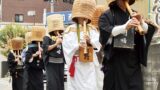 沿道では珍しい光景に写真を撮る人や、合掌する人の姿も見られた。近隣に住む女性は「虚無僧といえば時代劇の悪者のイメージがありましたが、実際に見ると良いものですね」と話した。
