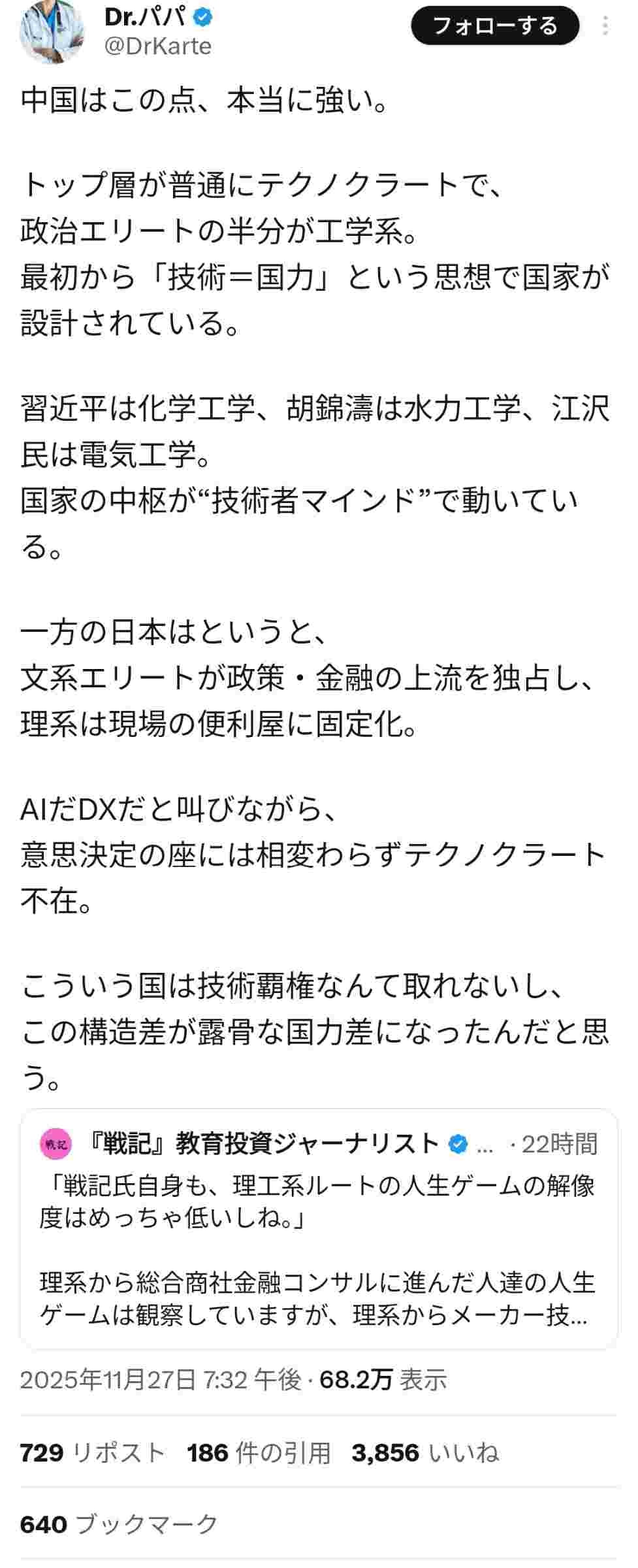 と思ったが鳩山由紀夫が工学系の博士号持ちだったな