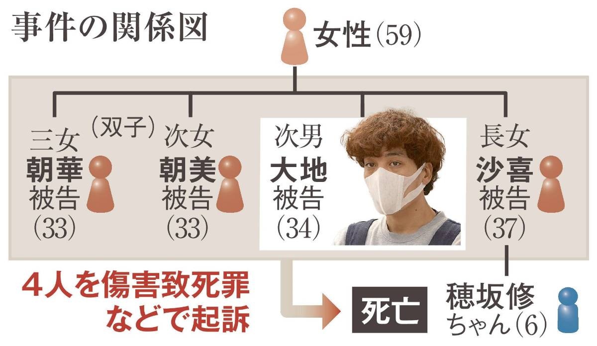 神戸地検は6年4月、修ちゃんの背中を鉄パイプで殴ったり踏みつけたりしたなどとする傷害致死と死体遺棄の罪で、同居で叔父の大地被告(34)や沙喜被告ら、きょうだい4人を起訴した。