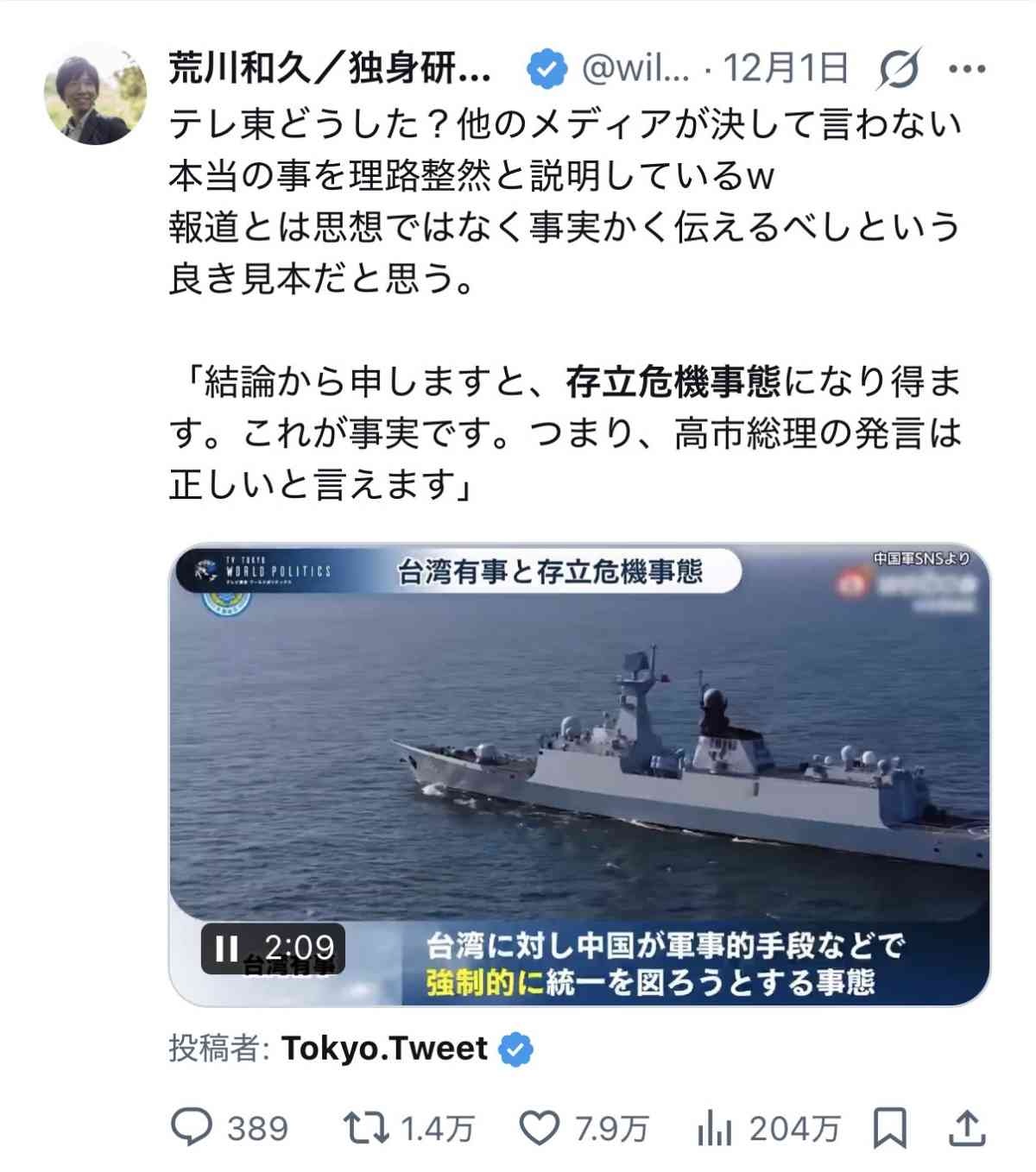 いわゆる「台湾有事」と内政問題(質問長いので最初だけ)
