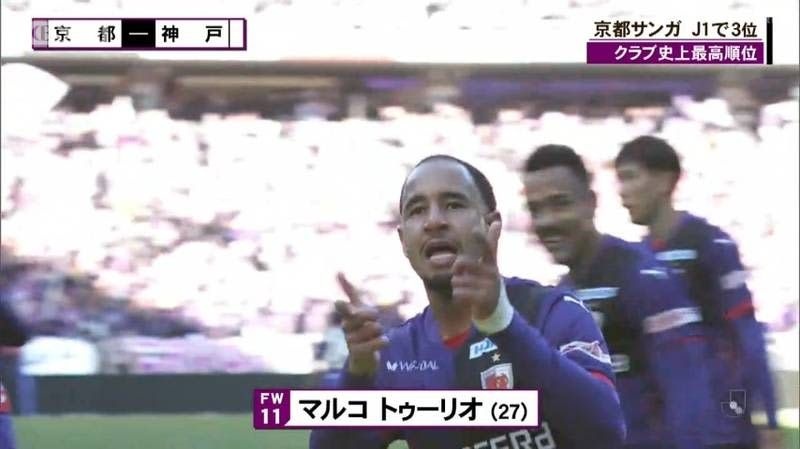 去年の王者・ヴィッセル神戸との最終節、サンガは前半38分、コーナーキックのチャンスで、トゥーリオが神戸戦4試合連続となるゴールを決めます。