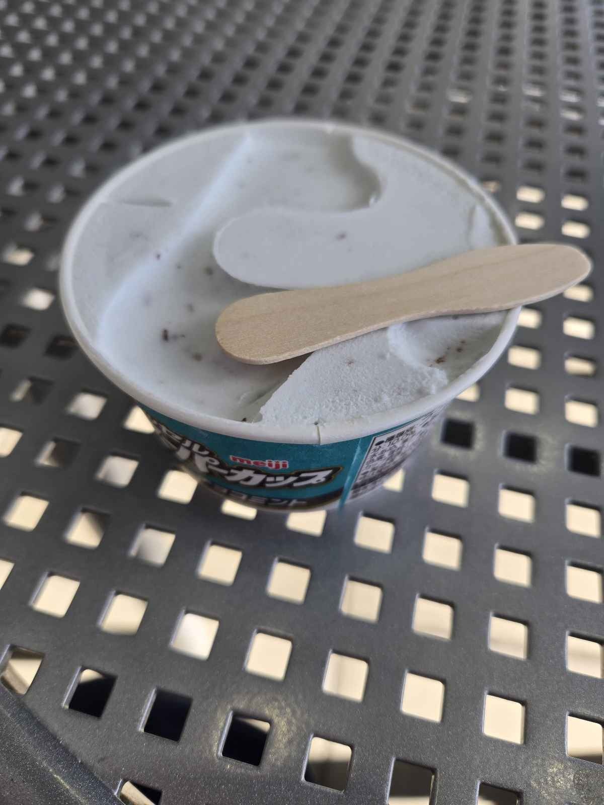 かったいアイスを食べるときはこんなヘロヘロのスプーンでは太刀打ちできないので半分にへし折って厚みを倍にすると捗るよ。1回やってみることをおすすめする