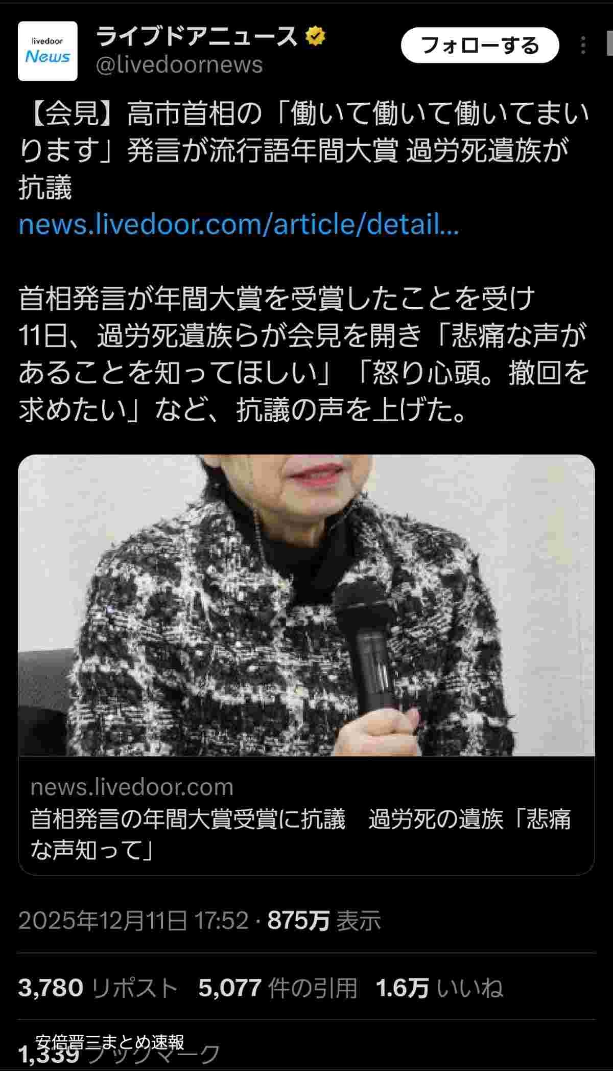 過労死の遺族、高市に抗議したため冗談抜きでボロクソに叩かれる