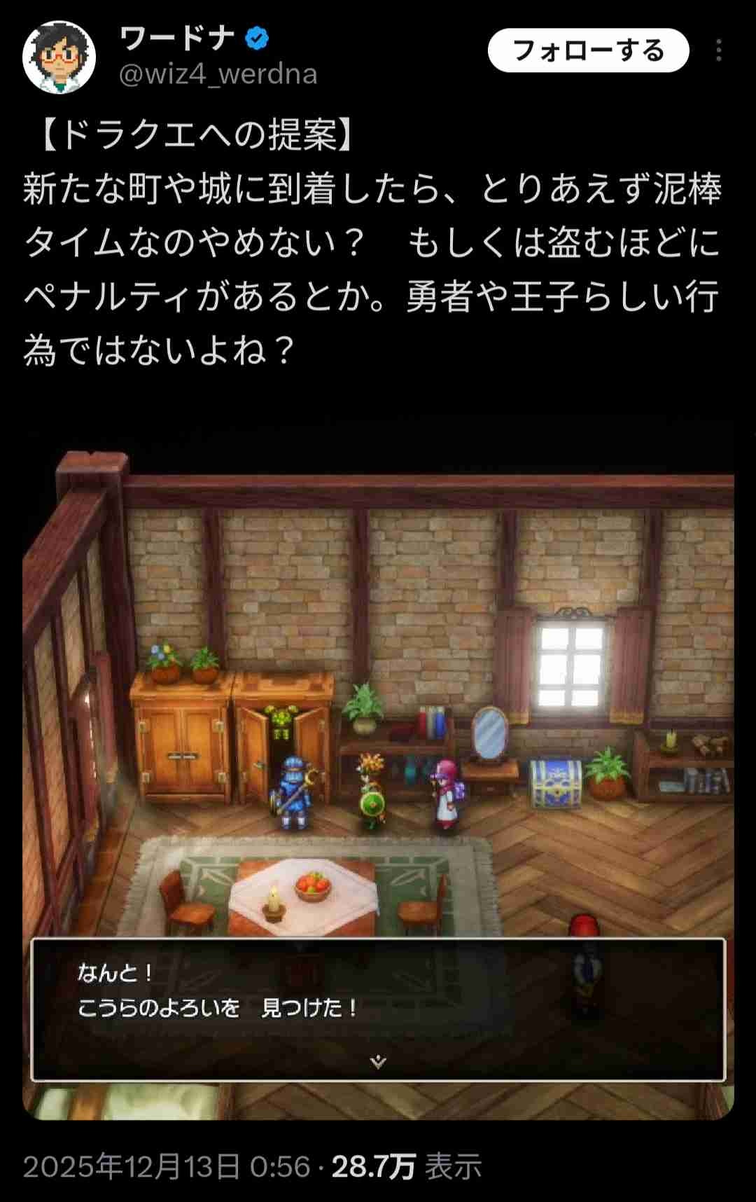 その白痴みたいなツッコミ何十年やってんだってとこまで含めてドラクエファンの風物詩なんでしょうね