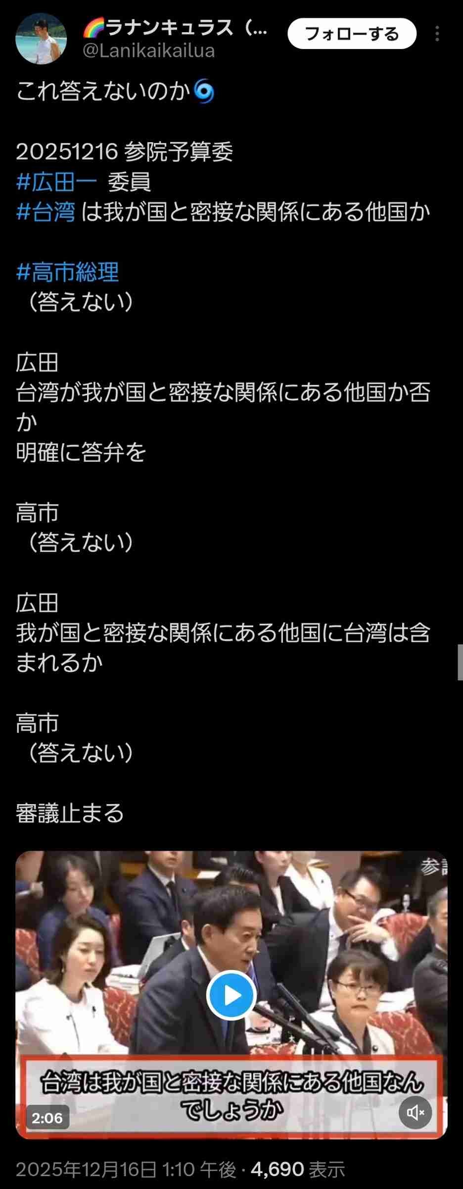 高市「台湾の為なら中国と戦争します」
