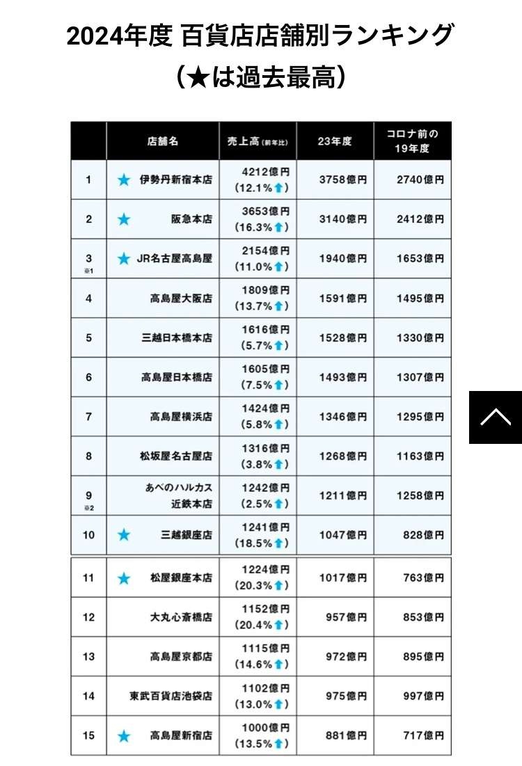 【画像】百貨店売り上げランキング2025。お前らの県の百貨店は何位だった?