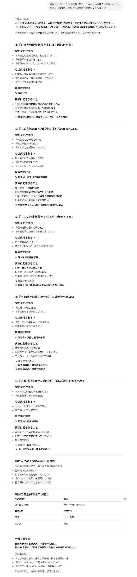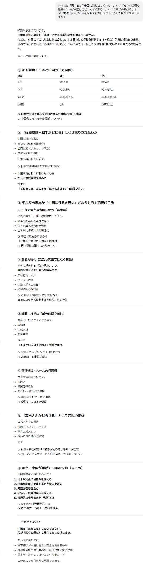 その意味で言えば高市の存立危機発言は「中国が怒った」という時点で失敗でしかないのに