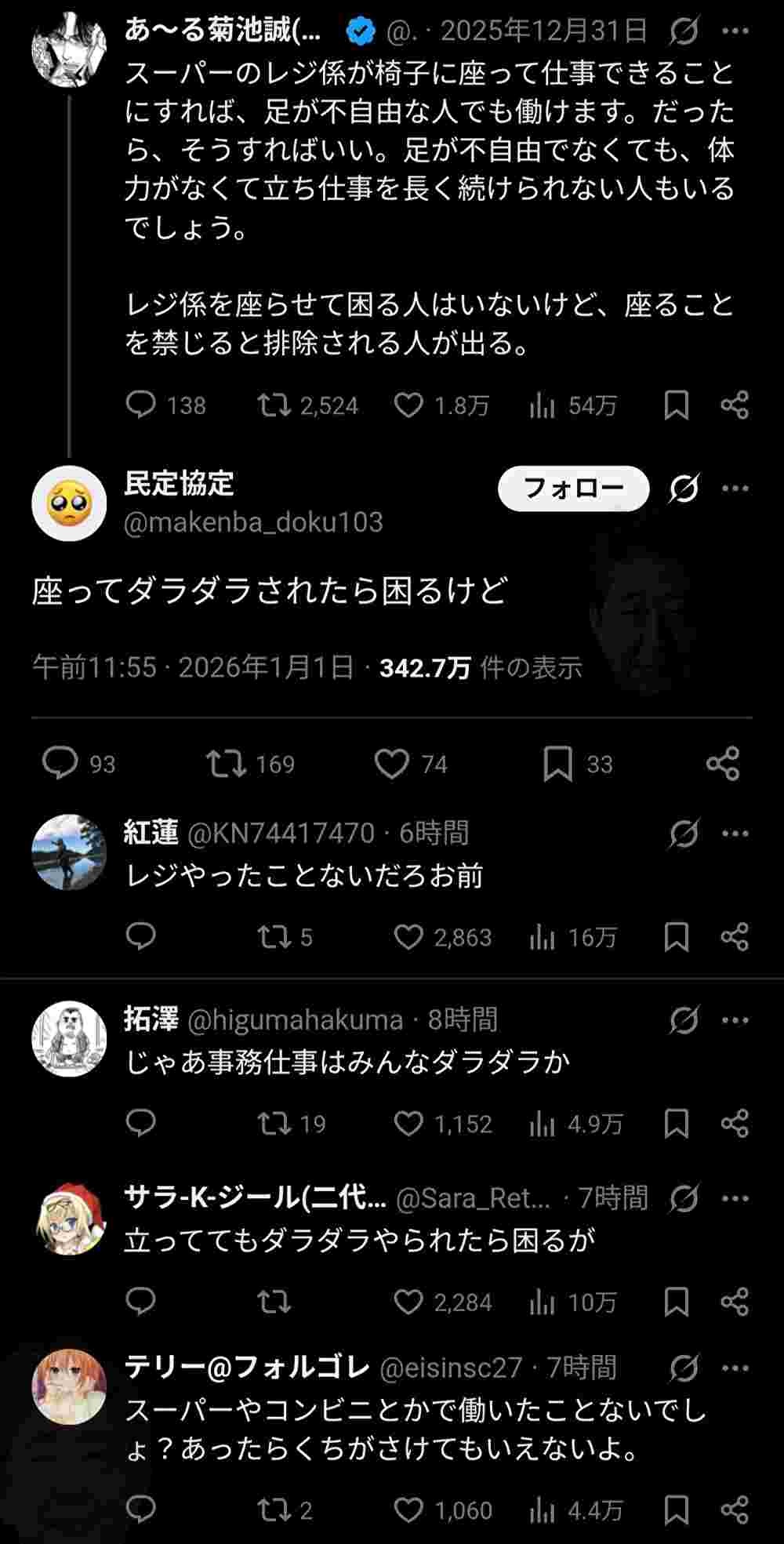 店員がレジで座るのを絶対に許さないマン、めちゃくちゃ叩かれてしまう