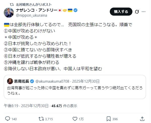 ナザレンコ「🇺🇦は全部先行体験してるので…売国奴の主張はこうなる①中国が攻めるわけがない*中国が攻める*