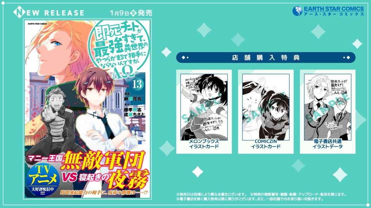「即死チート?-ΑΩ-」コミックス13巻の献本が届きました!年末進行だからか早い…! 2026年1月9日発売です。よろしくお願いします??