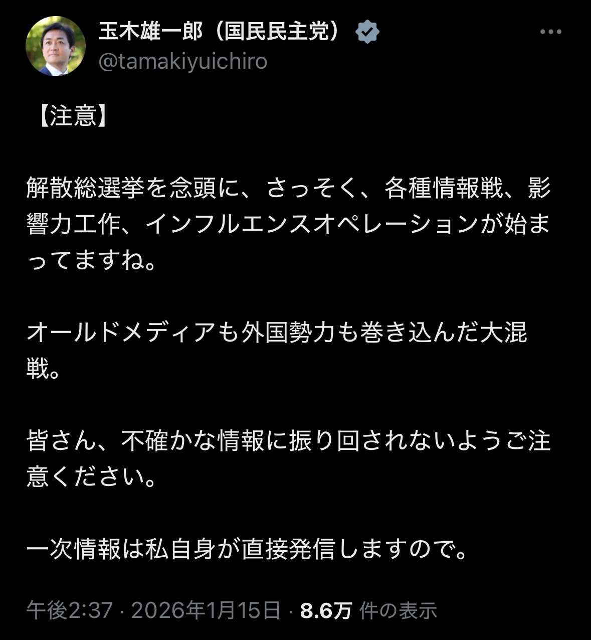 【注意】解散総選挙を念頭に、さっそく、各種情報戦、影響力工作、インフルエンスオペレーションが始まってますね。