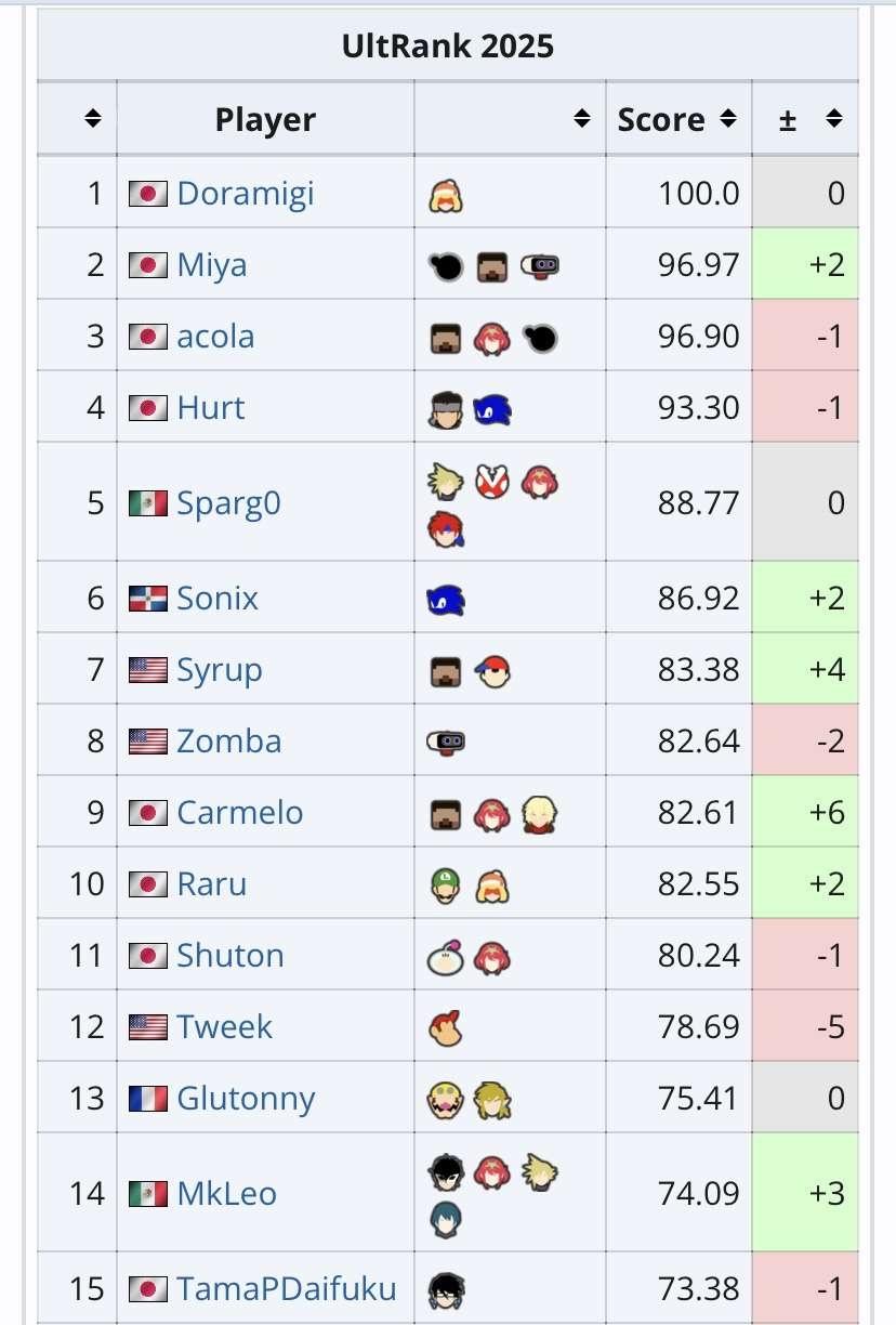 大乱闘スマブラSPの2025年世界ランキング、スティーブと兵庫県が強すぎて終わる