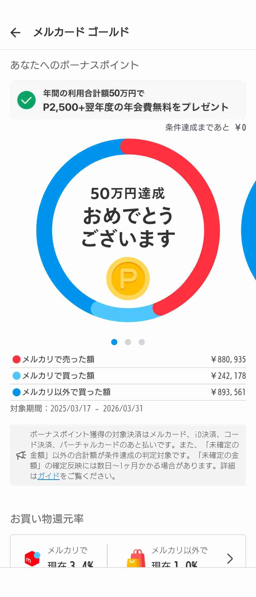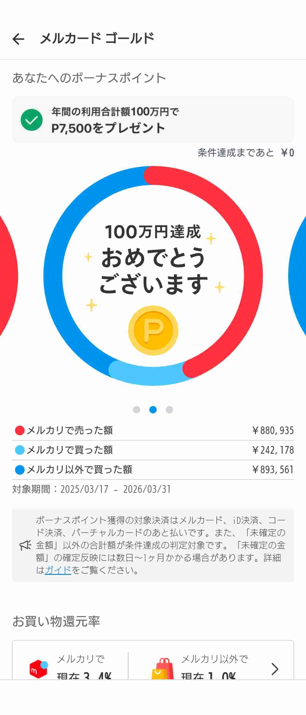 年間利用額200万円で2万ポイント還元(メルカリ販売額含む)