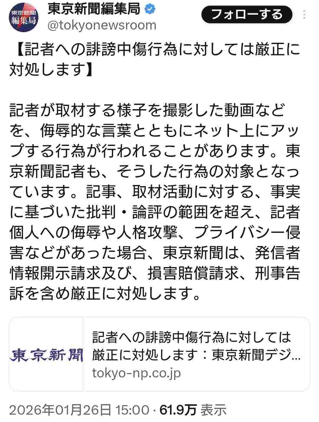 俺(東京新聞記者)は良いけれど