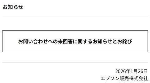約5年間気付かず。エプソン販売、システム不備で問い合わせに未回答