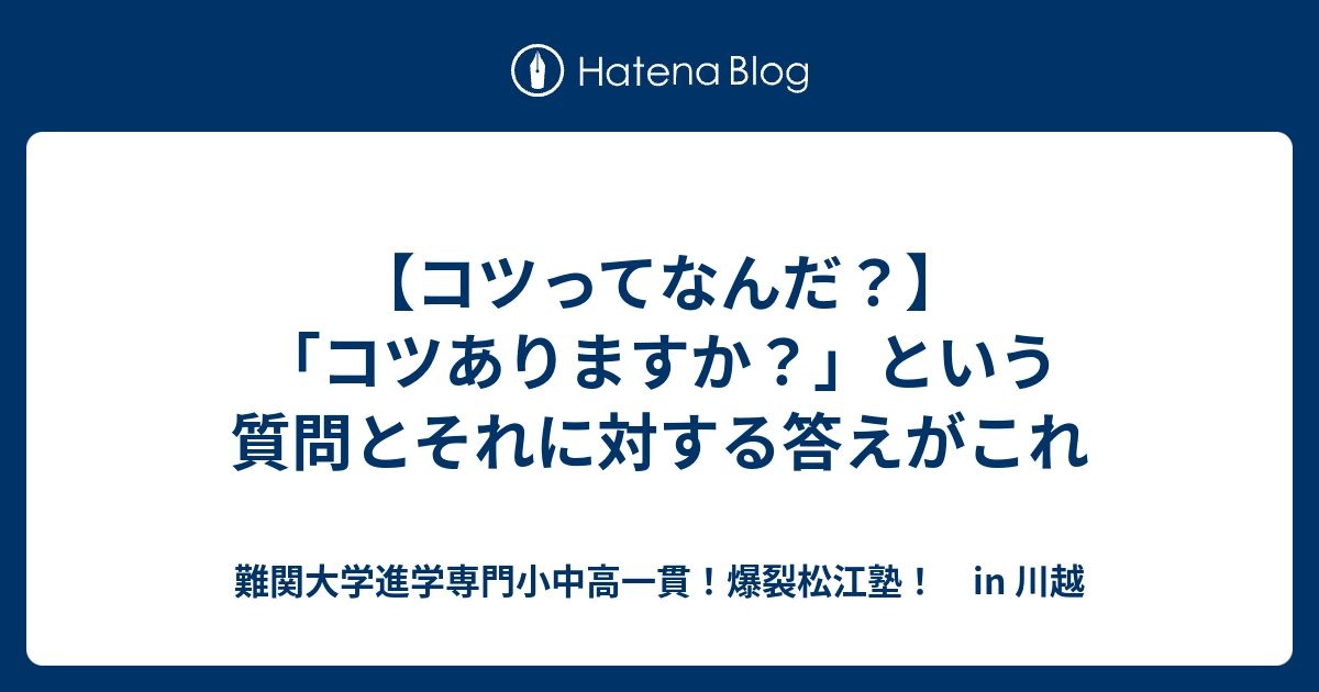 何かを教えてもらう時に「コツはなんですか?」って聞くやついるじゃん?