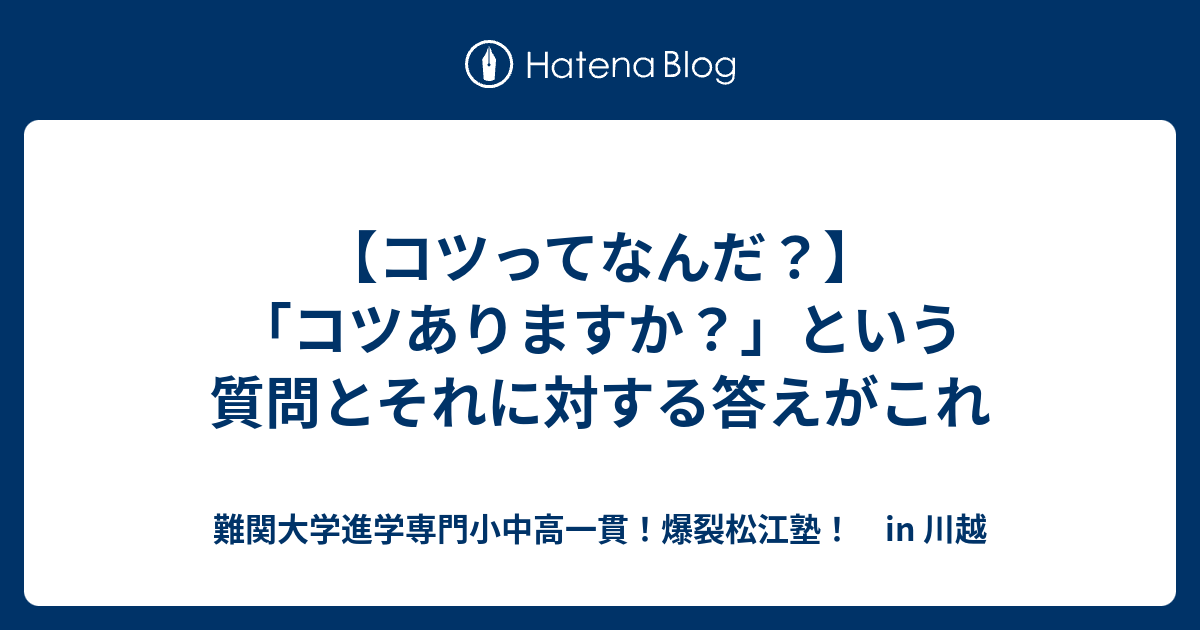 何かを教えてもらう時に「コツはなんですか?」って聞くやついるじゃん?