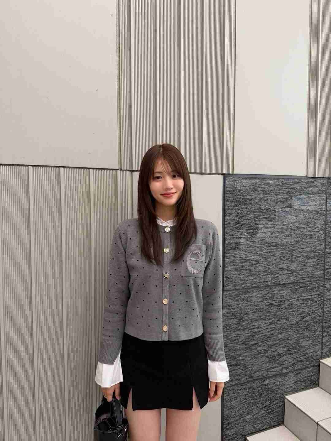 「姉がお誕生日だったので一緒にランチした日」とつづり、黒のバックを片手に、グレーのニットカーディガン、縦の切れ込みからふとももがチラリとのぞく黒のミニスカ姿のショットをアップ。誕生日のお祝いにふさわしい上品なコーデとなっている。