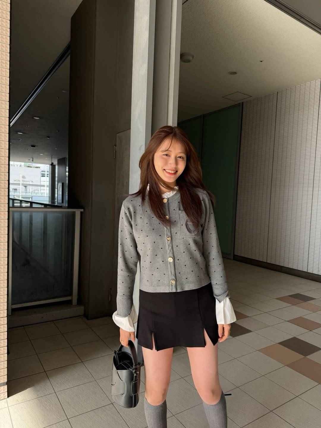 「姉がお誕生日だったので一緒にランチした日」とつづり、黒のバックを片手に、グレーのニットカーディガン、縦の切れ込みからふとももがチラリとのぞく黒のミニスカ姿のショットをアップ。誕生日のお祝いにふさわしい上品なコーデとなっている。