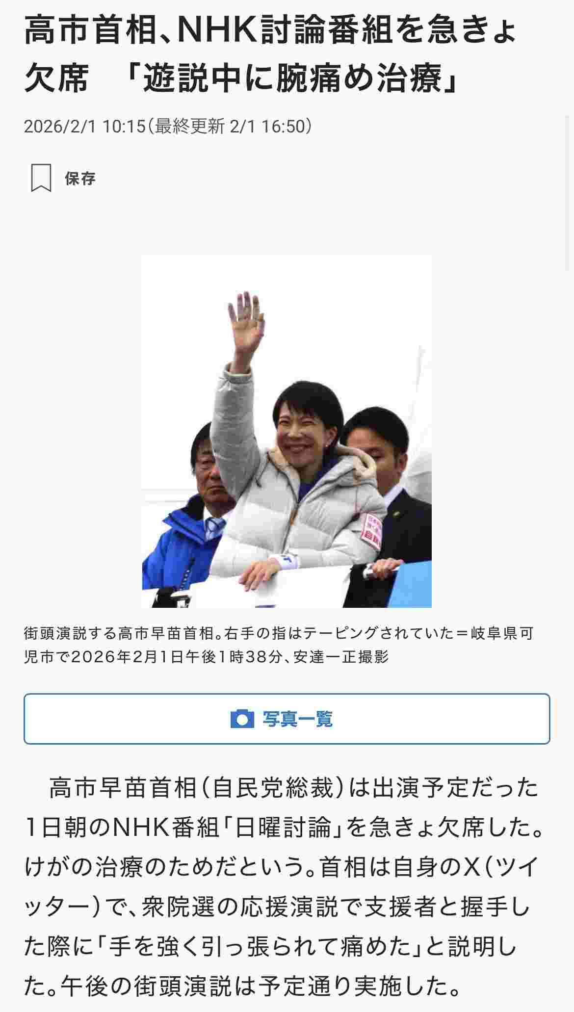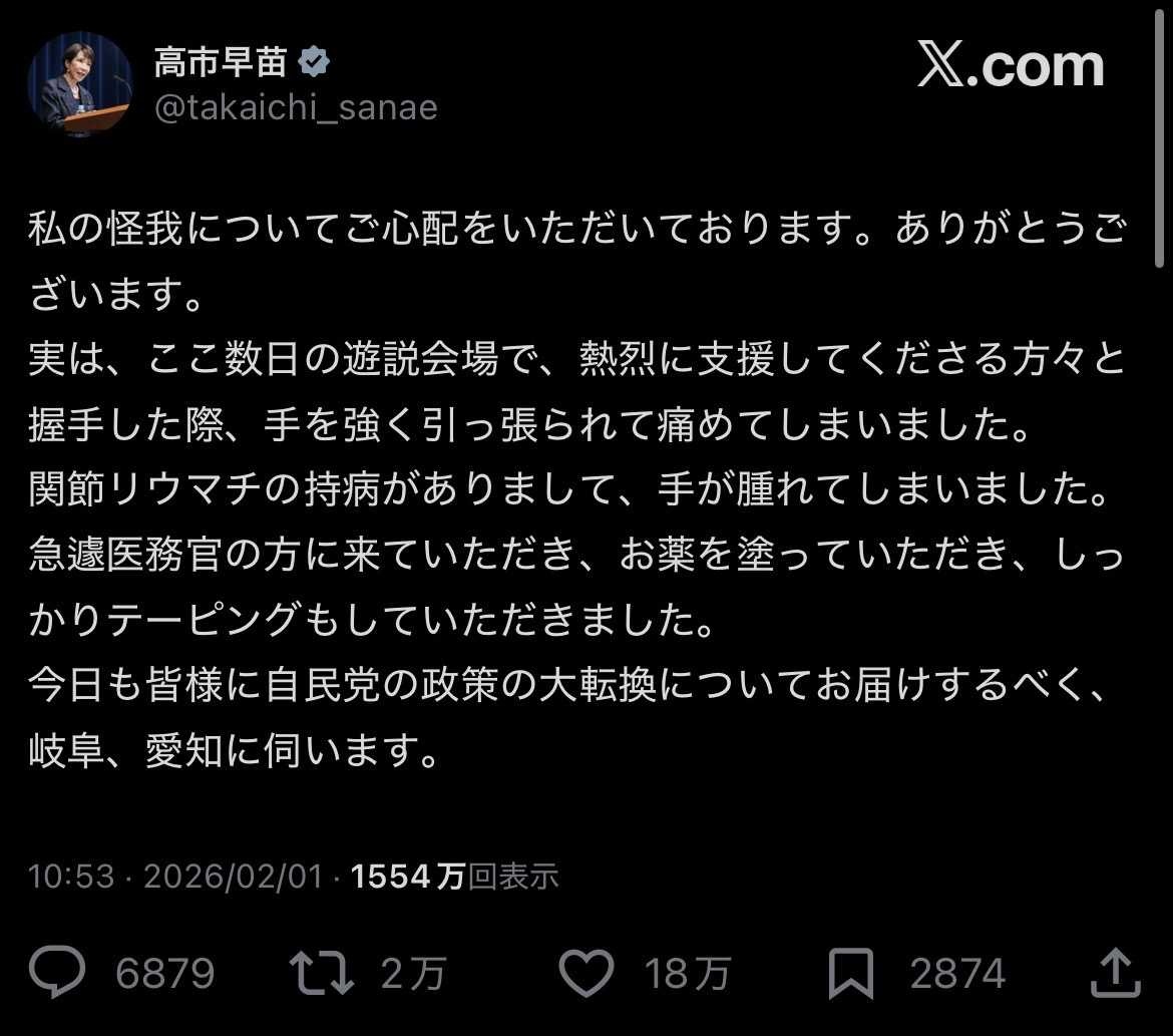 1日安静にすれば復帰できるくらいの怪我ならこれからの投票日までの握手やめて日曜討論出た方がよくない?