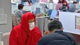 1階窓口で忍者装束になって来庁者に対応する市職員=伊賀市役所で2026年2月2日