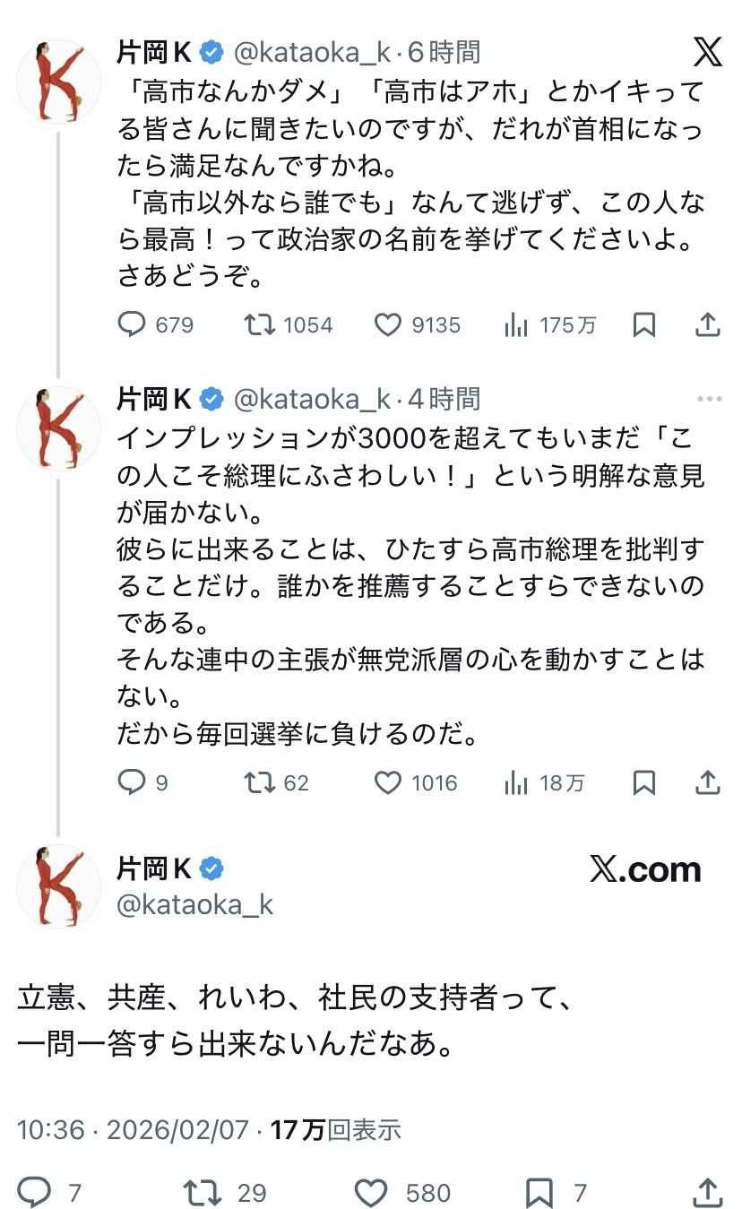 なんなら高市続投ならタマキンのほうがマシ