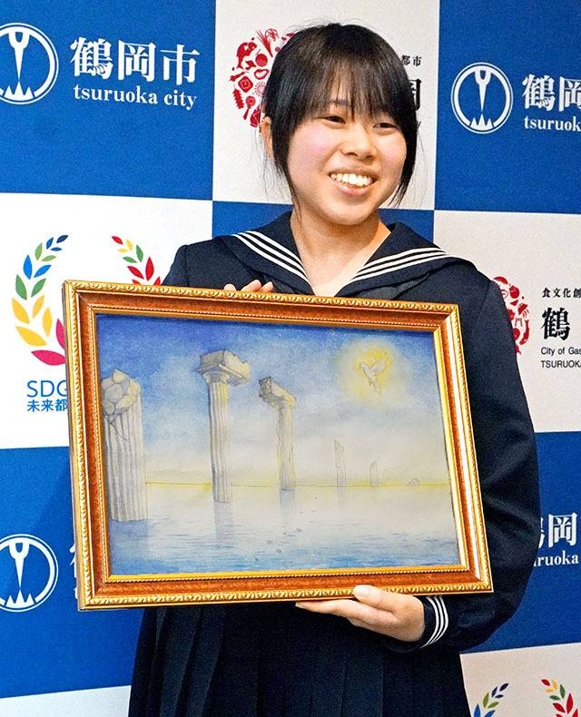 平和願う絵画で特別賞 広島のNGO主催コンテスト、明賀さん(櫛引中)