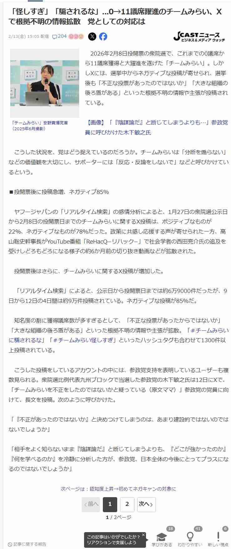 チームみらい、「怪しすぎ、騙されるな」根拠不明の情報拡散、典型的な認知ギャップ型疑念