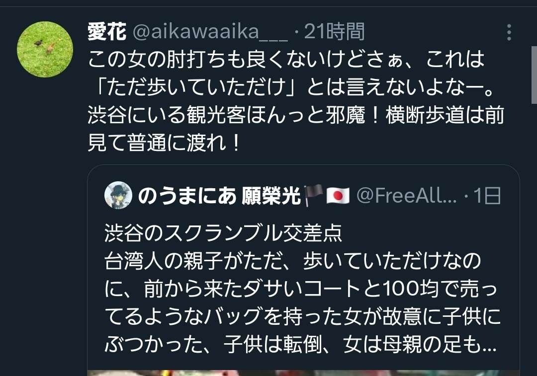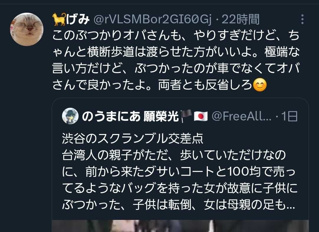ぶつかりデブス女擁護してるやつ、これ当たられたのが台湾人ってこと理解してるのか
