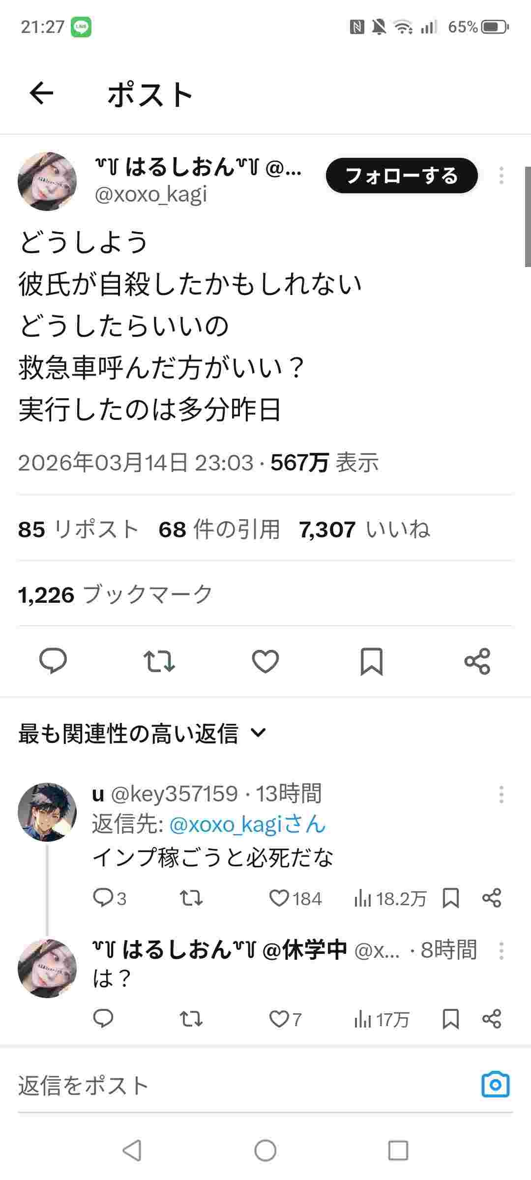 彼氏自殺したっぽいなぁ…せや!w