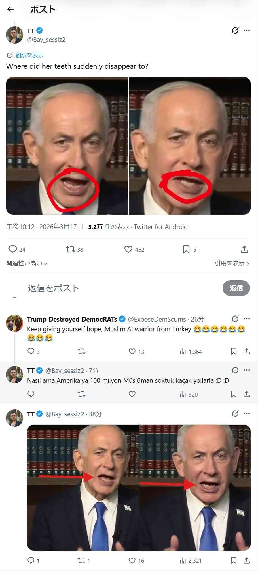 ネタニヤフ首相、生存アピールのためにXに動画を上げるが「歯が消えてる」と叩かれる