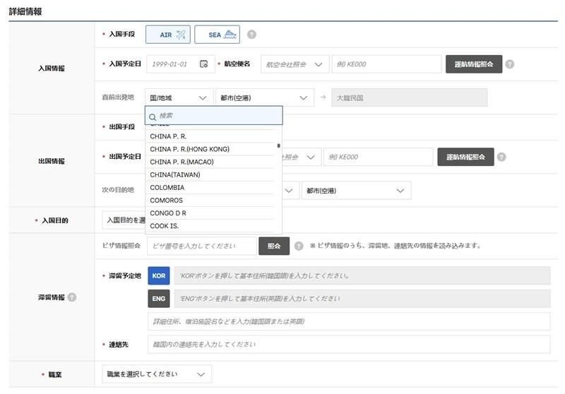 韓国は少なくとも昨年12月から、システム上の「直前出発地」や「次の目的地」の欄で、台湾の選択肢を「CHINA(TAIWAN)」としている。