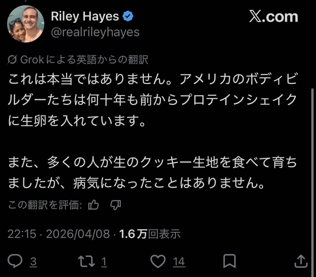 日本人のツイートを見て、生卵を食べようとしている外国人へ警告。