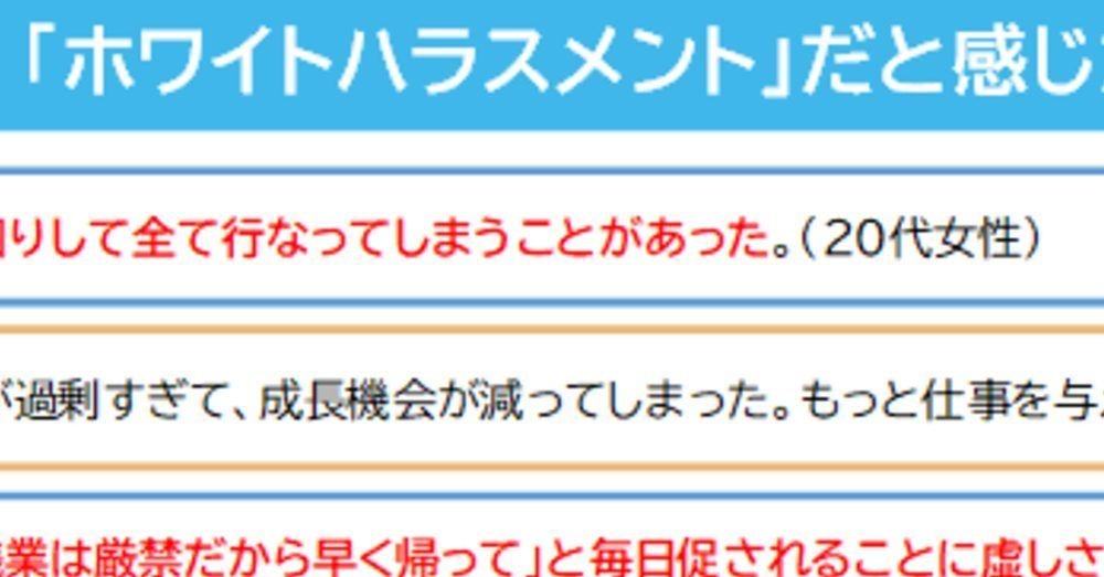 ホワイトハラスメント(ホワハラ)とは、過度な気遣いや配慮が結果的に相手の成長やキャリアの妨げになる行為。