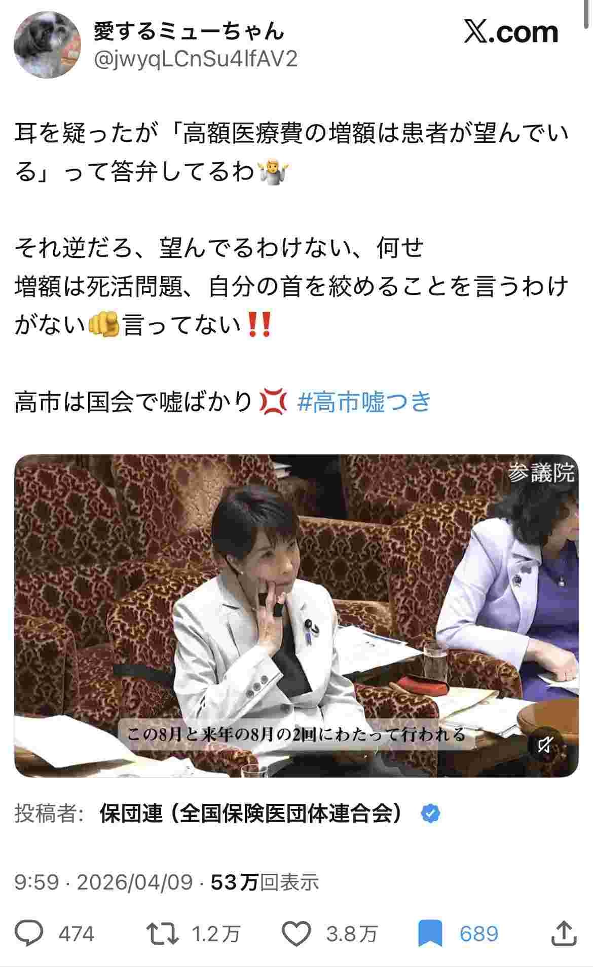 タカイチ「高額医療費の増額は患者が望んでいる」