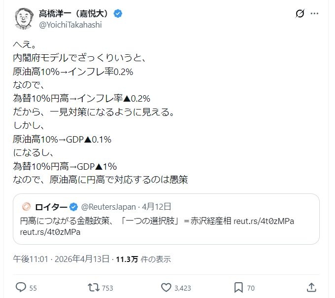 高橋洋一「原油高に円高で対応するのは愚策」赤沢経産相、円高につながる金融政策「一つの選択肢」