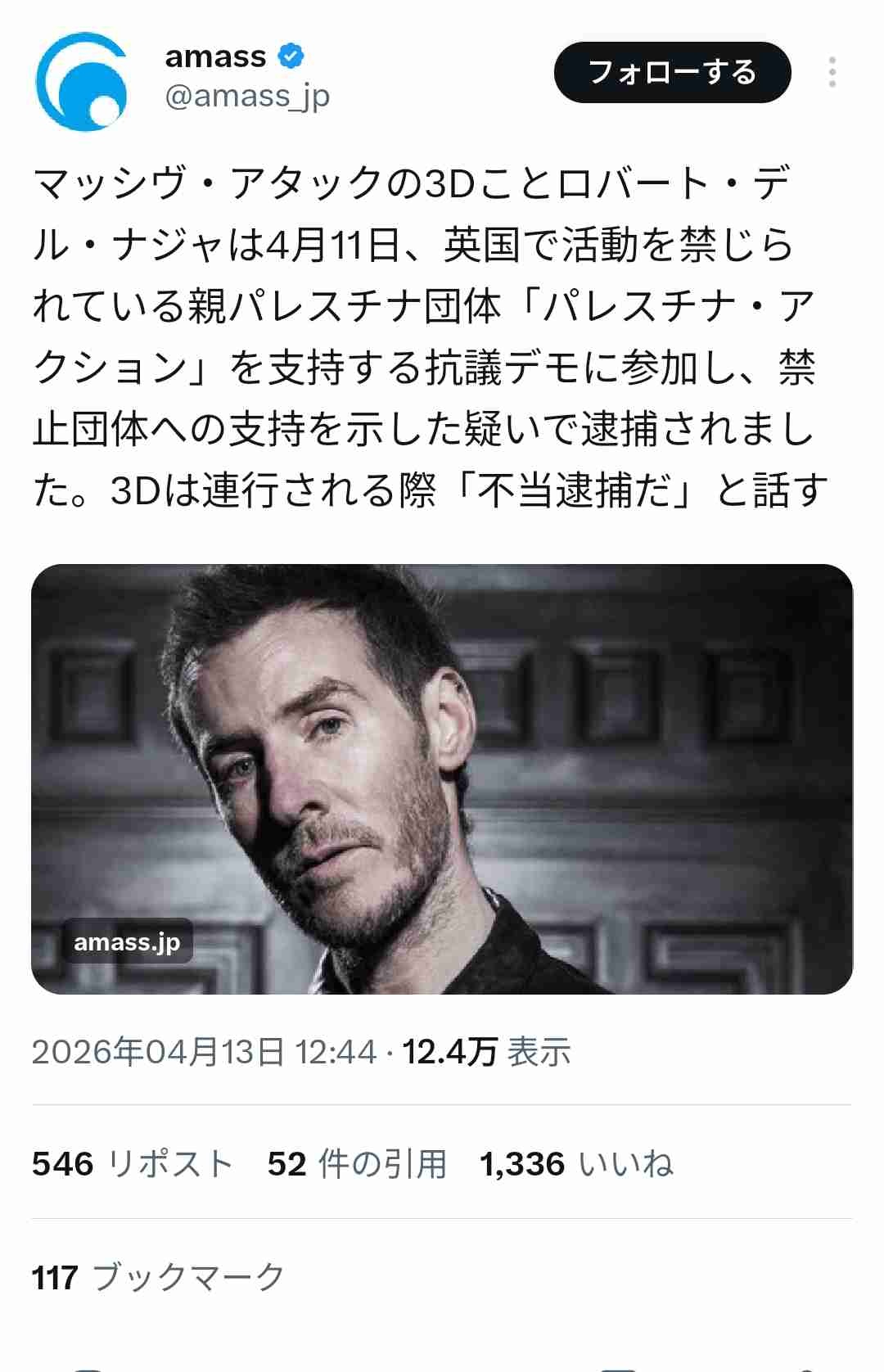 MASSIVEATTACK、パレスチナデモ参加罪で逮捕 フジロック出演不透明に