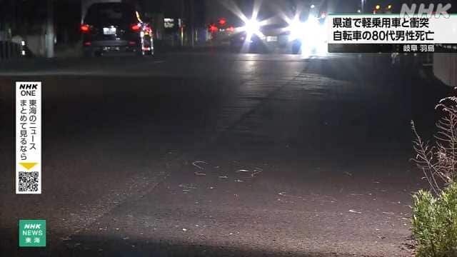 【NHK】14日朝、岐阜県羽島市の県道で、自転車に乗っていた80代の男性が軽乗用車と衝突し、病院に搬送されましたが、その後、死亡しました。 14日、午前7時50分ごろ、羽島市正木町新井の県道で、走行していた自