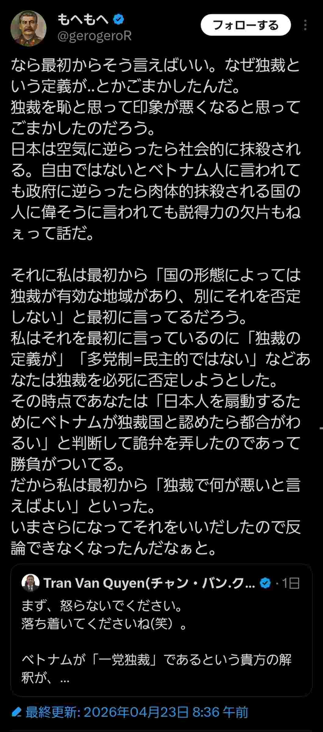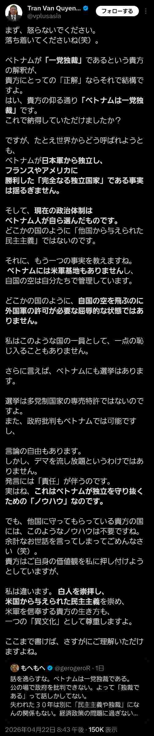 勝手に格下と見下してたベトナム人に論破されちゃったねぇ