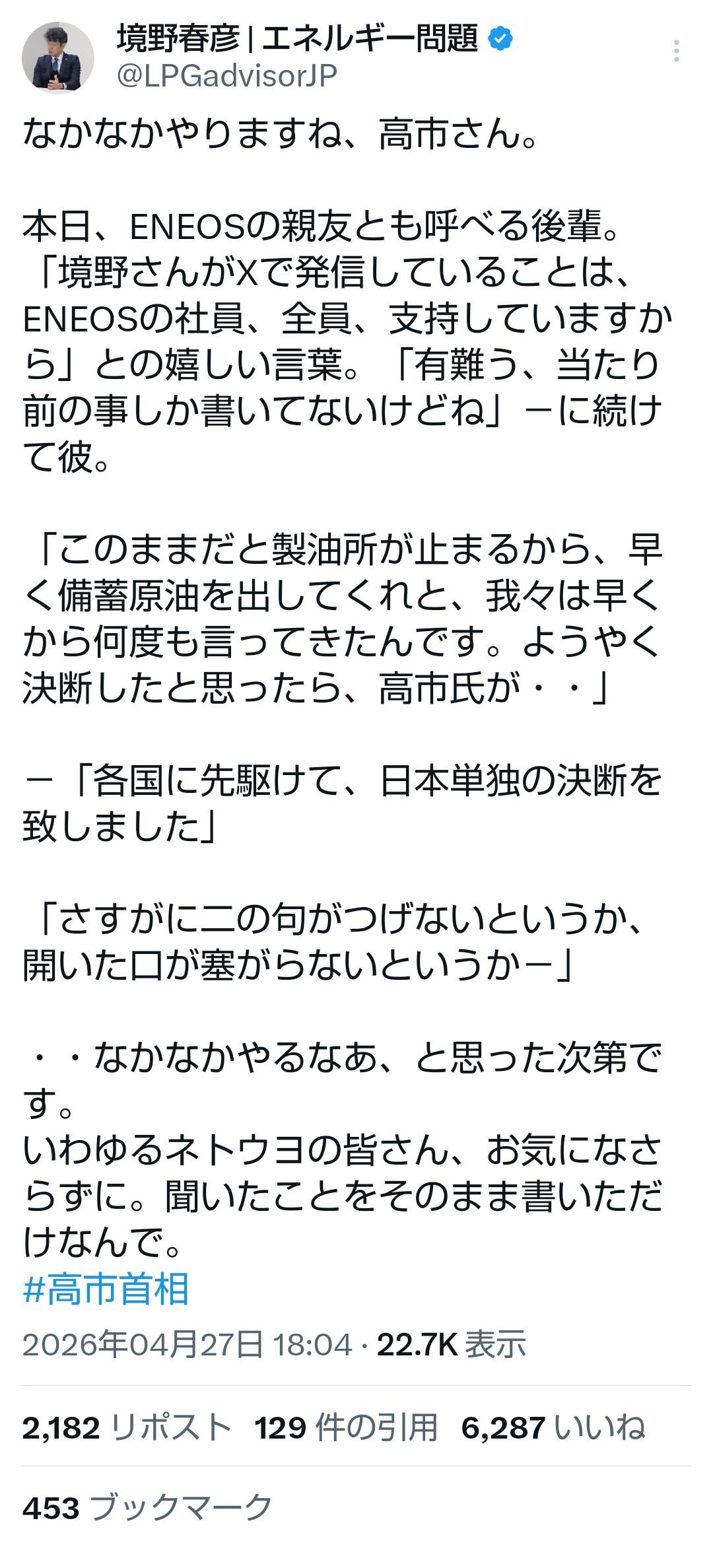 それはそれとしてコイツの言ってる通りに事が起きているので高市何とかしろよはその通りなんだけども