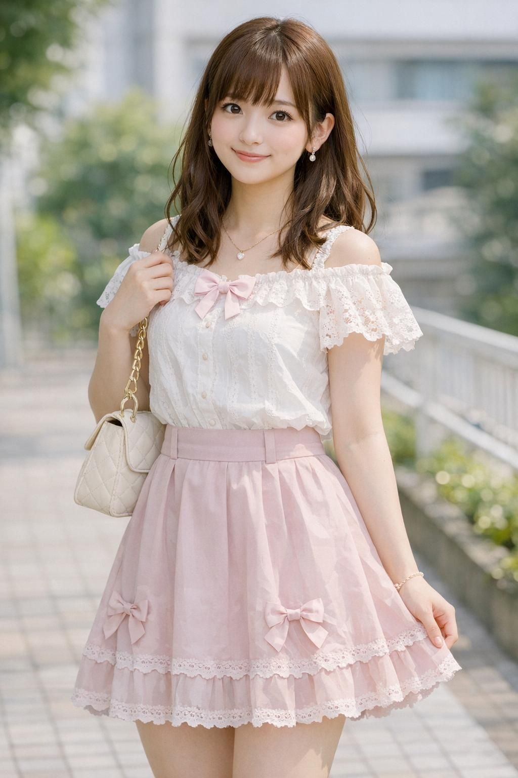 服装はガーリーコーデ、スカートスタイル