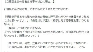 嫌儲原口一博「立憲が若者支持率ゼロの理由は野田がパワハラ体質だから、自分だけが正しく相手に敬意や思いやりもない」