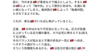 嫌儲【高市】台湾史.jp、正論 「中国はいま国内がめちゃくちゃ不安定化してて、圧力鍋の蓋を力づくで抑えてる状態w」
