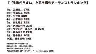 芸スポ「生歌がうまい」と思う男性アーティストランキング!3位平井堅、2位小田和正を抑えた1位は?
