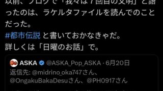 嫌儲ASKA「答えは「ラケルタファイル」にあった。人類は6回DNAを書き換えられてた。僕らは7回目の文明のようです。」