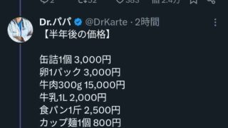 嫌儲X医者「半年後には卵1パック3000円、牛乳1L2000円になります」