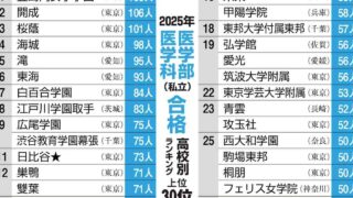 ニュー速私立大医学部合格ランクは東高西低に