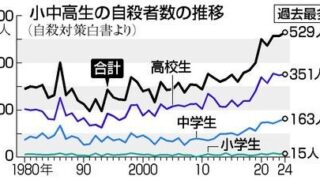 ニュー速+小中高生の自殺、最多529人 全体減も若者高止まり 未遂で薬乱用多く・政府白書