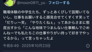 VIP職場体験の中学生「だり~w」←これが死ぬほど叩かれてるけどさ、、、