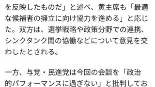 嫌儲台湾野党、選挙協力へ。高市と共同して台湾有事を煽る独裁与党・民進党に危機